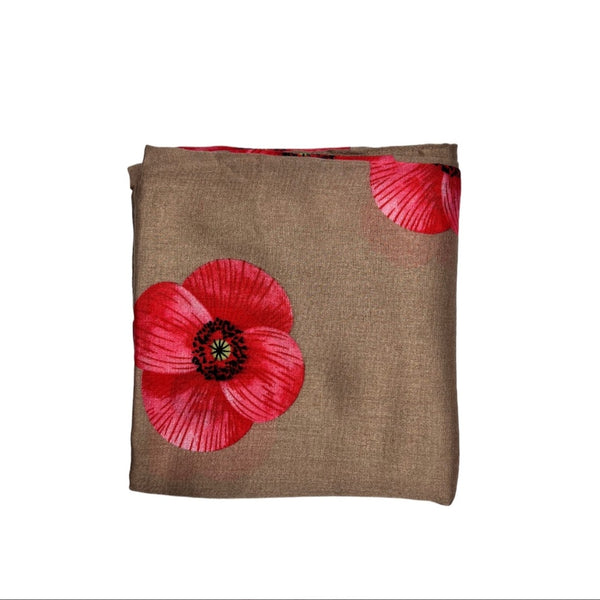 The camel poppy scarf is a versatile and elegant addition to your wardrobe. This scarf features a beautiful poppy design, perfect for any occasion, it adds a touch of sophistication and charm to any outfit. Elevate your style with this stunning scarf.