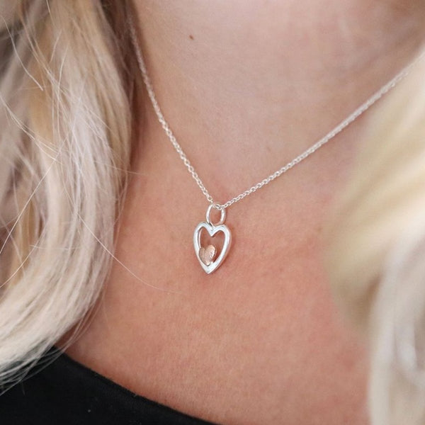 POM Sterling Silver & Rose Gold Double Heart Necklace